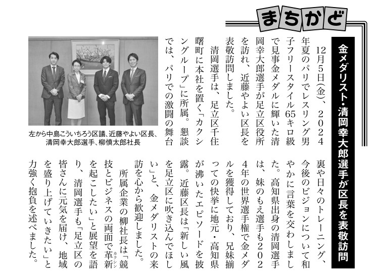 近藤やよい足立区長への表敬訪問の様子が紹介されました。